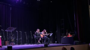 Además, el público contó con la suerte de poder ver en el escenario a las flautistas Irene Mai Hernández Placencia, que pertenece a la sociedad musical de la filarmónica de Los Realejos, y a Paola García García, de la agrupación musical Cruz Santa. Ambas tocan la flauta travesera y compaginan sus estudios universitarios con su amor por la música. Entre ellas compartieron una pieza musical única, en la que sin duda demostraron su talento.