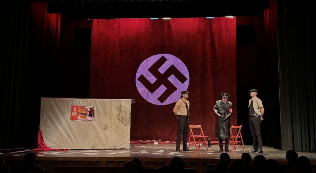 En el inicio de la primera escena, en el escenario, un padre y una hija protagonizan el núcleo emocional de la historia. Él representa a una generación atrapada entre la responsabilidad familiar y el peso político de la Alemania nazi. Sophie, la hija, una joven adoctrinada por el régimen y convencida de que forma parte de ‘la única escapatoria de Alemania’.
