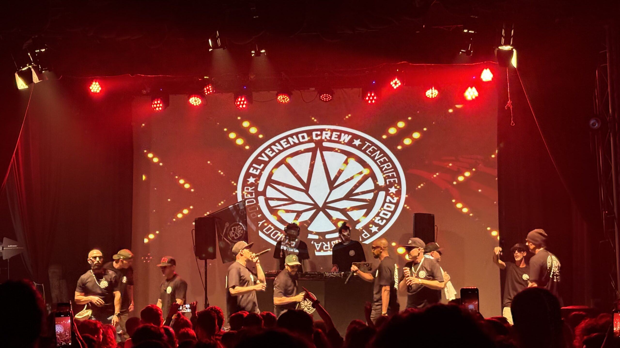A lo largo de la actuación, los doce raperos interpretaron un gran repertorio de canciones y el público acompañó al grupo con diversos gestos y movimientos. Por otro lado, uno de los temas principales que aborda este nuevo disco es la turistificación en las islas Canarias. Es por ello que a mitad del espectáculo los raperos incluyeron carteles de «se vende» en el escenario a modo de protesta por esta situación. Mientras, aparecieron distintas imágenes relacionadas con este problema que sufre el Archipiélago.