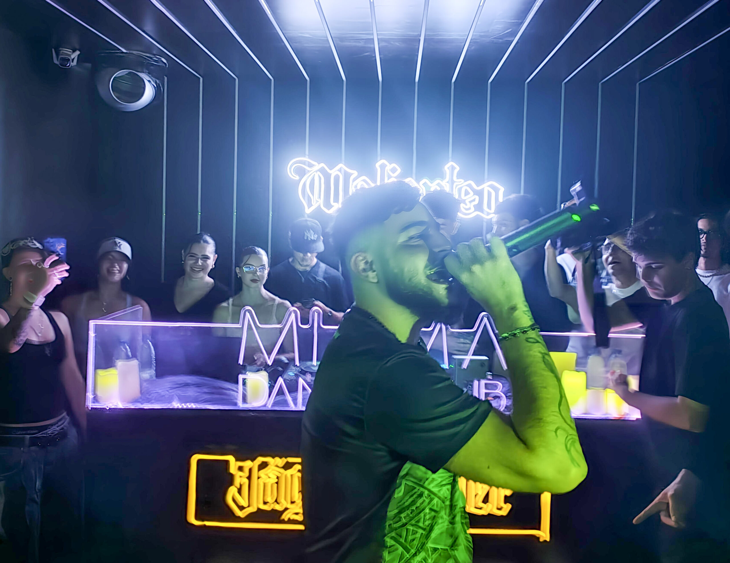 Esta madrugada, en torno a las 03.00 de la mañana, el cantante murciano Guxo dio el que fue su primer concierto en Tenerife de la mano de Malianteo en la discoteca Miama Dance Club. Horas antes de empezar el establecimiento ya estaba lleno, un gran grupo de asistentes se encontraba disfrutando del dj set, que destacaba por poner a sonar música del urbano español, aunque también hubo temas de artistas internacionales.