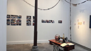 La exposición estaba dispuesta en tres salas, en la primera apareció Sacudiendo el patronato, como metáfora simple de las normas impuestas. Ventiladores encendidos que levantaban documentos oficiales, cartas y libros de 1943 del Patronato de Protección a la Mujer, se apagaban y hacían caer los decretos, para volver a encenderse levantando otra vez los papeles. Poniendo el foco en la fragilidad de nuestro sistema en una escenografía que se tambaleaba entre lo grotesco y lo inquietante del control desproporcionado. A su alrededor, fotos murales como Yo soy. Homenaje a las mujeres rapadas (2018) recibían la mirada del público. Una columna de pelo humano en Mechón colectivo se alzaba anclada a las paredes en la segunda sala. Junto a unas tijeras y una máquina de coser antigua, dejaba claro que la memoria sería la protagonista.
