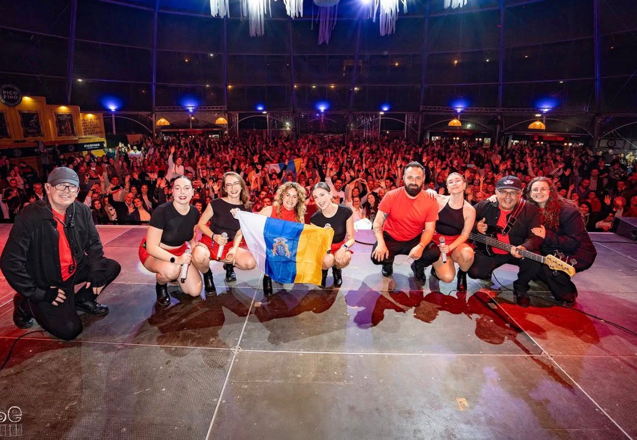 ¿Hay algún concierto o momento que hayas vivido con Nueva Línea que te haya marcado especialmente? «Si, te podría decir que hay muchos sitios donde hemos tocado después del boom como las ventas en Madrid o en Asturias, Galicia… Pero cuando me preguntan esto siempre me llega el recuerdo del baile de magos de La Orotava, en verano de 2025. Para mí fue tan impactante ver tanta gente, y eso que no nos estaban viendo a nosotras, pero la gente estaba tan entregada, estábamos todos guapísimos con nuestros trajes tradicionales… Yo sentía que no estaba trabajando sino de fiesta con la gente».
